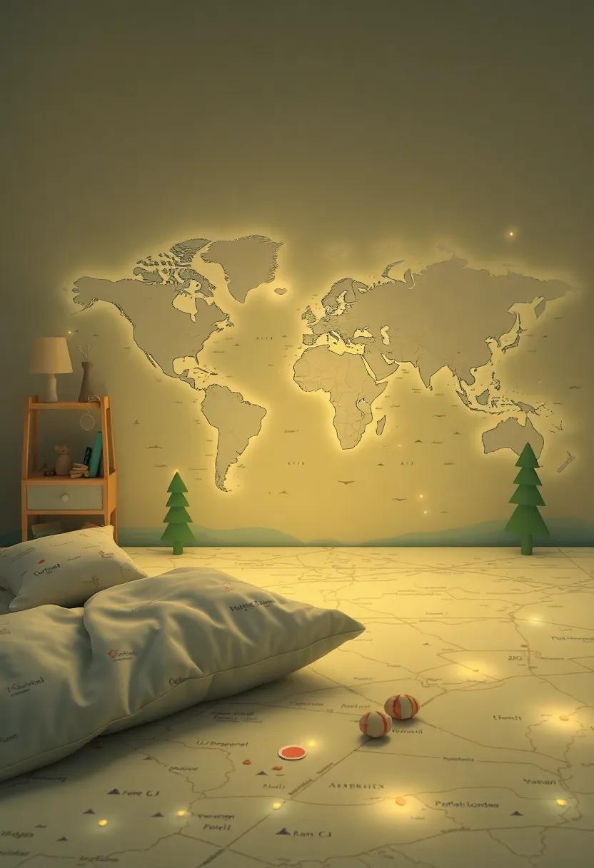 Lighting plays an essential role in setting the tone for a dream-filled nursery. Use themed light fixtures that echo the adventurous feel of the maps,such as lamps shaped like lanterns or stars. You can create a whimsical ambiance with a combination of different light sources, such as: