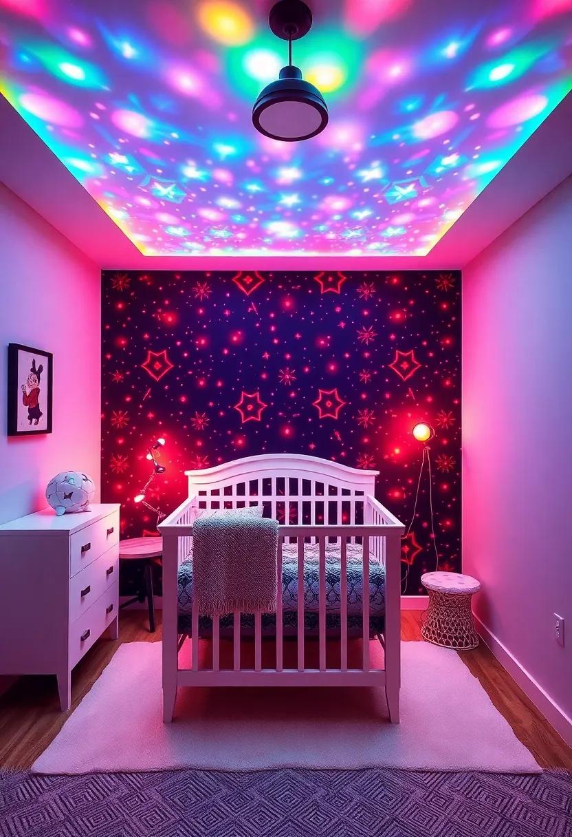 Infuse vibrancy and energy into your little one’s nursery with imaginative lighting options that create a colorful ambiance.think outside the customary white bulb; choose multicolored LED lights that can be adjusted to fit the mood of each moment. these options allow you to bathe the space in warm hues for calm evenings or bright tones for playtime, transforming the room into a lively wonderland. Hang string lights in playful shapes,or utilize projector lamps that cast dazzling designs of stars and rockets on the walls,encouraging wonder and imagination.