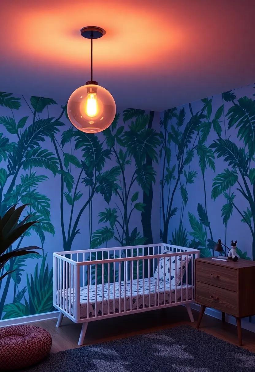 Transforming a nursery into a tropical oasis is as easy as incorporating unique lighting fixtures that evoke the spirit of the rainforest. Consider using pendant lights shaped like leaves or animals that cast playful shadows and create an enchanting atmosphere. You can also opt for string lights designed to resemble vines or twinkling stars, adding a whimsical touch to bedtime routines. These designs not only brighten the space but also encourage imagination, making your little one’s nursery feel like a delightful adventure.