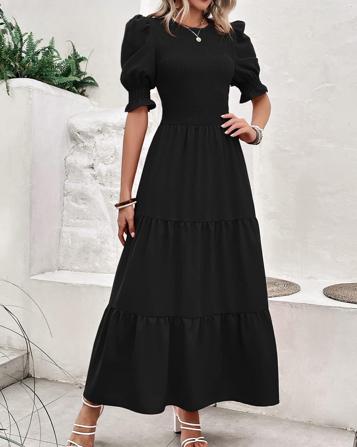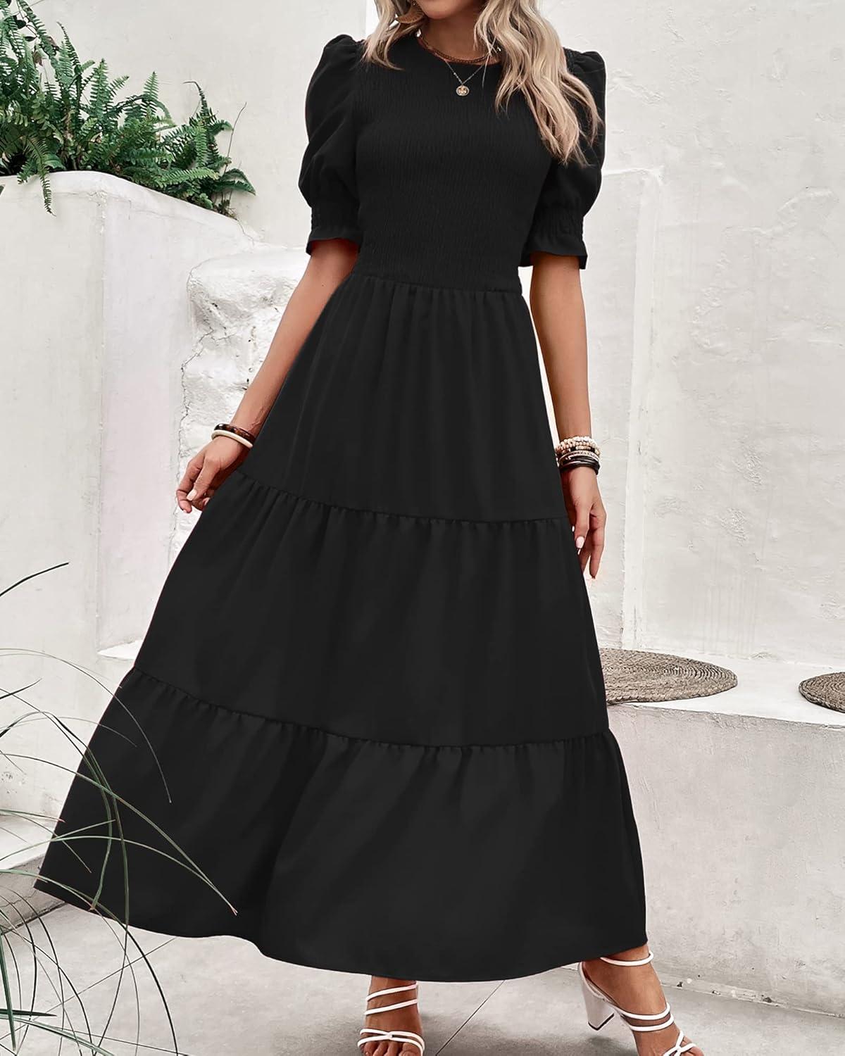 As we dive into spring, this⁤ dress perfectly captures the‌ season’s light and ⁢fresh essence with its elegant crew neck and charming ruffle details. The soft, smocked bust gently hugs ⁤the⁢ waist, creating a flattering silhouette that transitions effortlessly from casual daytime strolls to ⁢evening garden parties. The⁤ short puff sleeves add a ​delicate touch of volume, enhancing the dress’s feminine appeal without overpowering its‍ flowy, boho vibe. Each ruffled tier moves gracefully⁢ with every step, reflecting a breezy, carefree energy ‌that’s just right for warmer days.