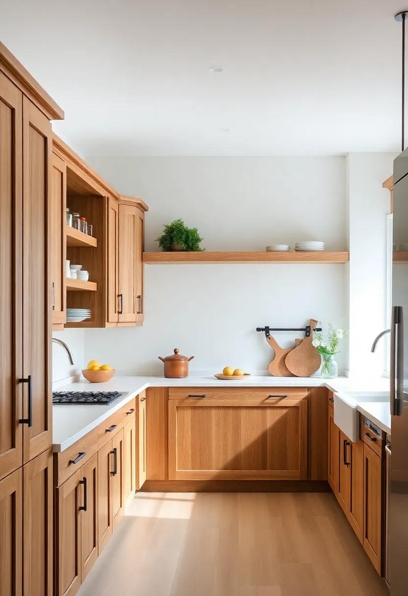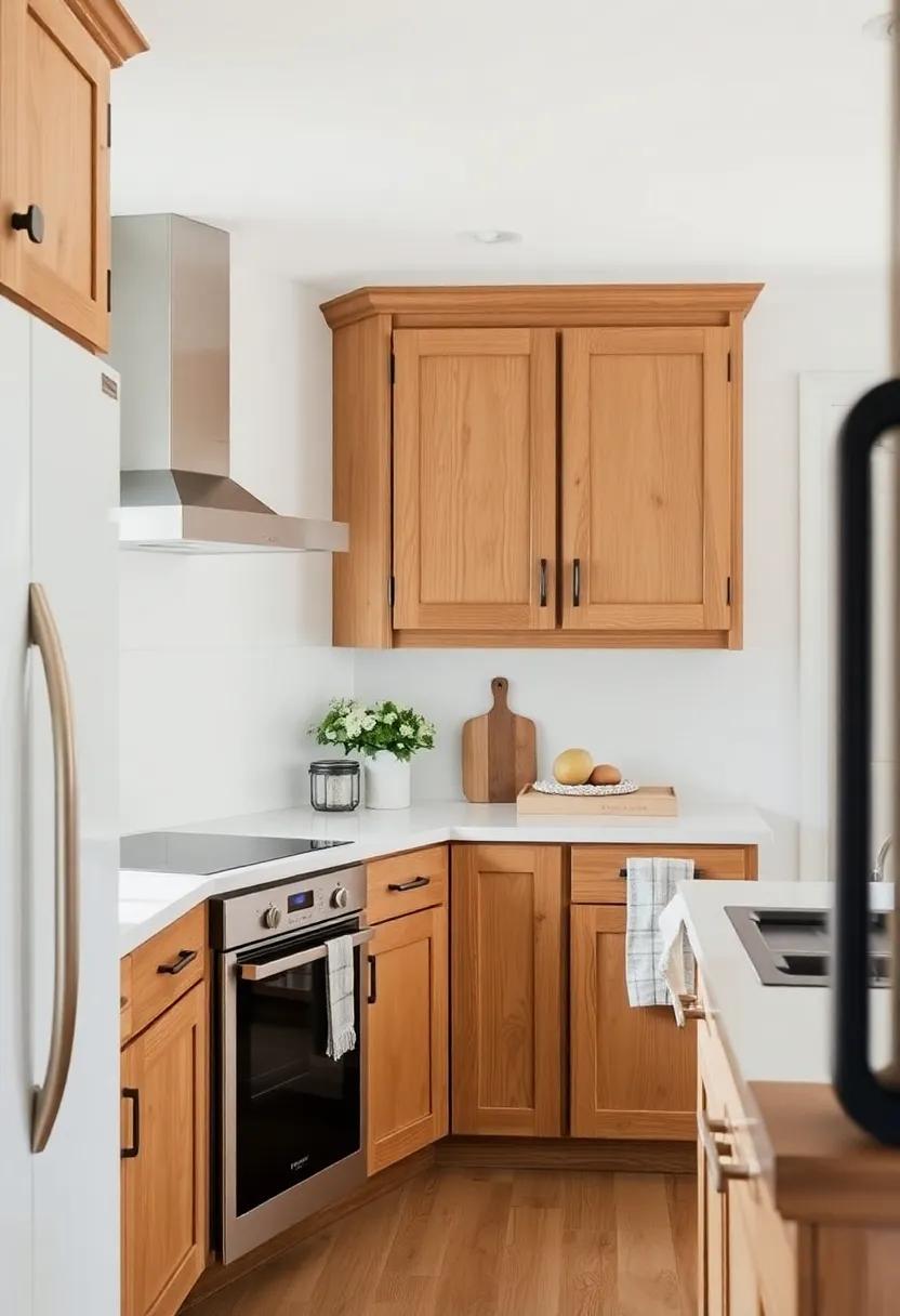 In small spaces, oak serves as more than just a visual delight; it brings functionality and warmth that transform any cramped area into a charming nook. Consider built-in shelving or cabinets crafted from oak, which not only maximize your storage options but also add an element of timeless elegance. The natural grain of oak creates a sense of coziness, grounding the aesthetic and making even the smallest kitchen feel inviting. Here are a few ways to utilize oak effectively: