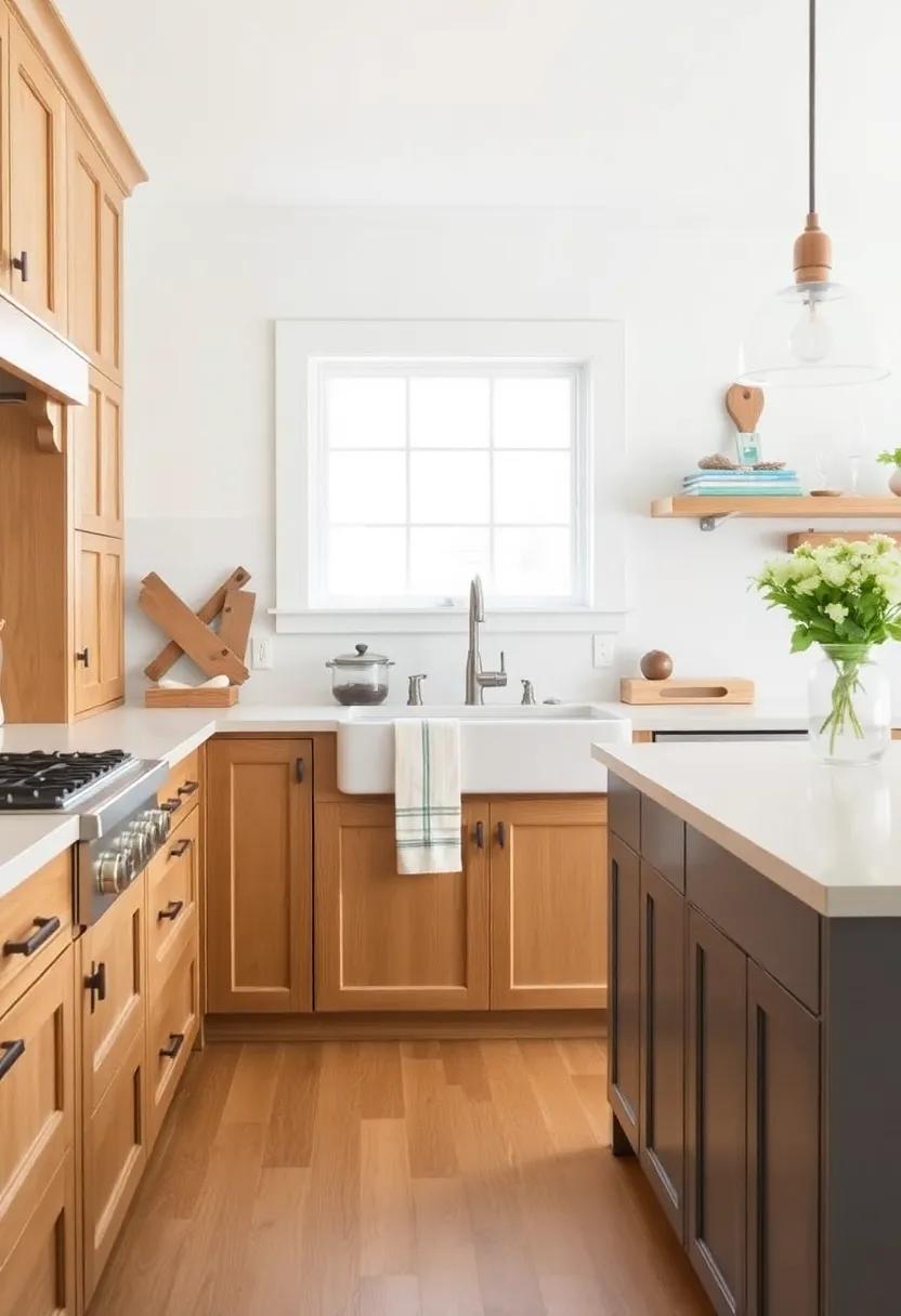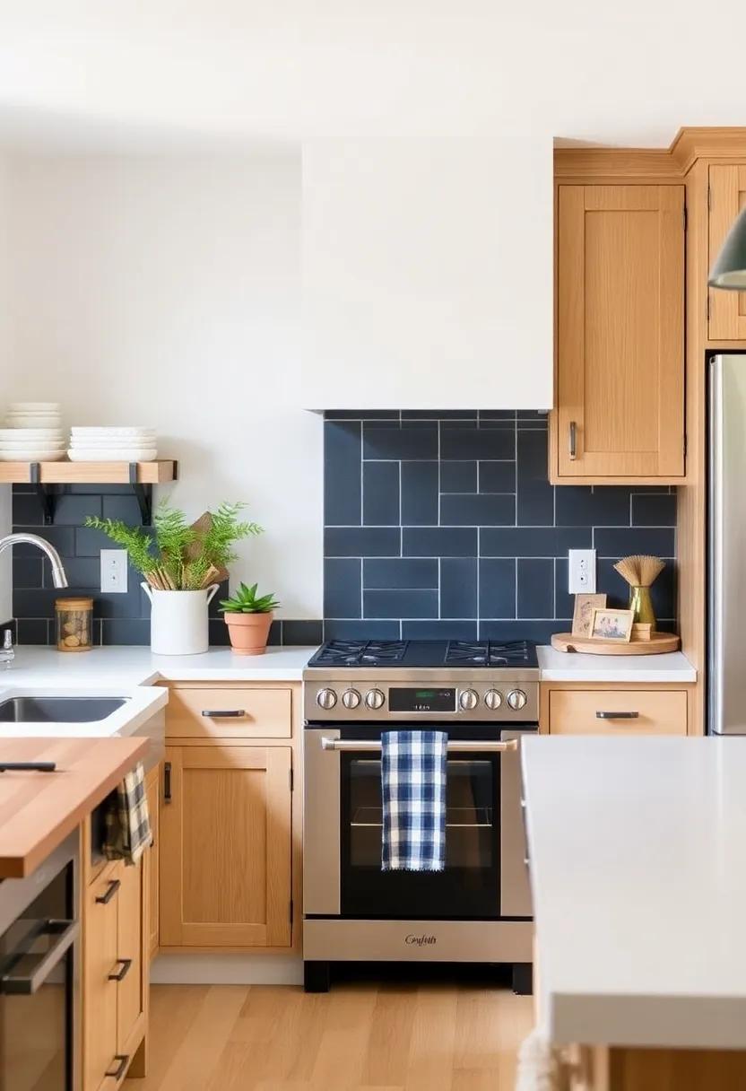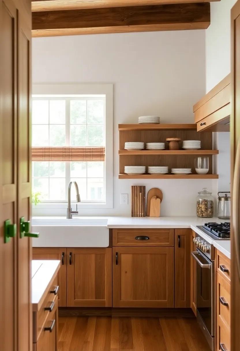 - Open Shelving: Use metal brackets to support oak shelves, creating a beautiful focal point that showcases dishware or décor.