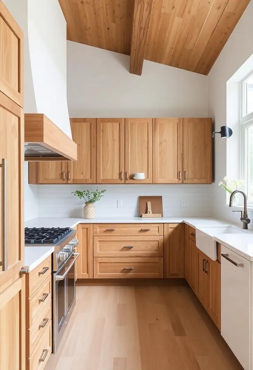 Ultimately, the warm glow emitted by natural light can elevate the charm of any farmhouse kitchen, making oak wood cabinetry an elegant choice for those seeking timeless appeal. To explore more on the impact of natural materials and light in interior design, visit Houzz.