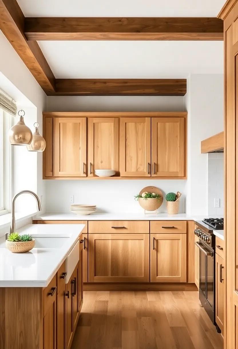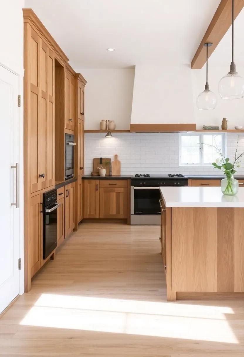 Moreover, the integration of oak goes beyond cabinetry, extending to other elements such as wooden beams, island tops, and accents like oak dining tables that complement the overall scheme. The trend also emphasizes sustainable practices, with many homeowners seeking locally sourced timber, ensuring their designs are both eco-friendly and timeless. To further enhance the farmhouse vibe, materials like subway tiles, copper fixtures, and matte black accents are being paired with oak elements for a striking contrast. For more inspiration on blending oak into your kitchen design, visit House Beautiful.