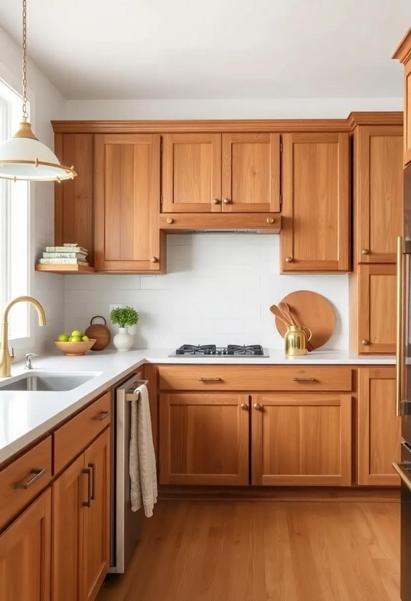 The rich,golden hues of oak cabinets can transform any kitchen into a welcoming space. The natural grain patterns and warm undertones bring an element of rustic charm that blends effortlessly with a variety of decor styles. Consider incorporating light fixtures and accessories that resonate with the earthy characteristics of oak for a harmonious look. A few simple touches can elevate the warmth of your kitchen: