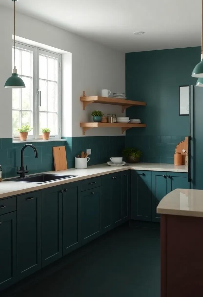 - Moss Green: Adds a rustic charm, perfect for open shelving adorned with plants and earthenware.