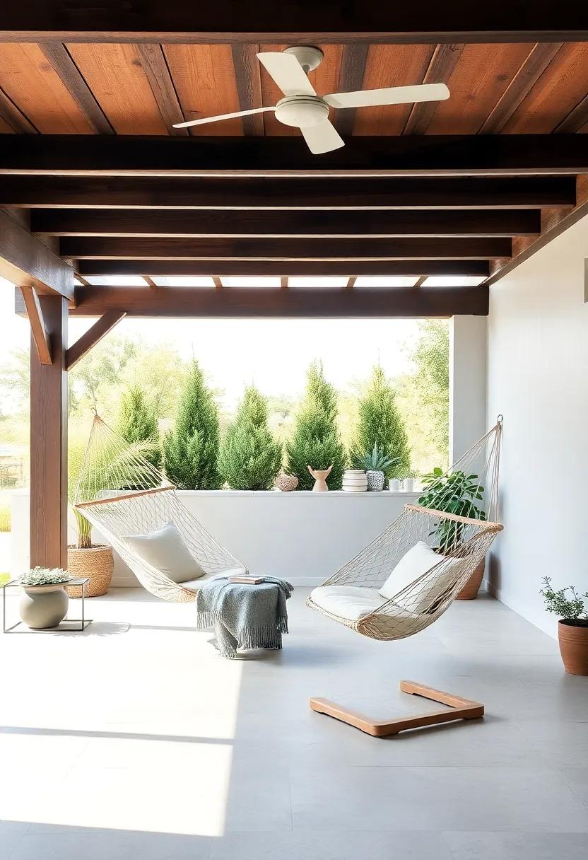 Incorporating a hammock into your outdoor oasis can be as simple as choosing the right materials and colors to match your rustic farmhouse aesthetics. Consider options like: