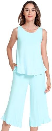 Indulge in the comfort of this sleepwear, designed specifically for those who value both style and relaxation. Made from premium bamboo viscose, this set ensures breathability and moisture-wicking properties, making it ideal for a restful night’s sleep. The sleeveless tank top paired with capri pants allows for unrestricted movement, perfect for lounging around the house or enjoying a peaceful night in. With an elegant design and soft fabric, this pajama set creates a luxurious atmosphere at home.