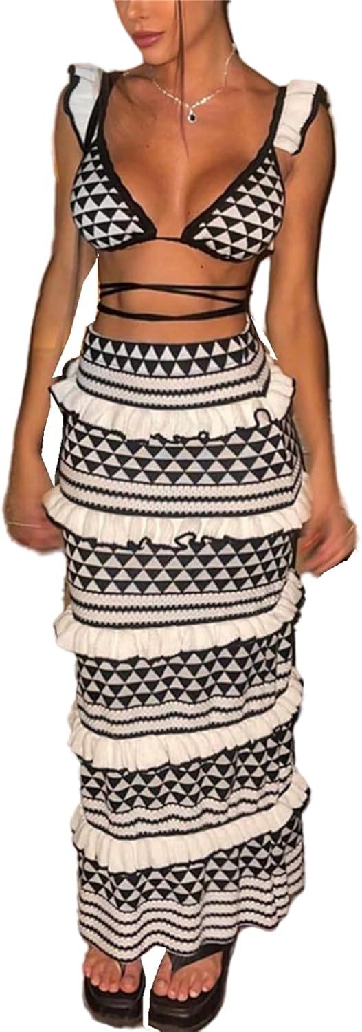This stunning two-piece ensemble is perfect for various occasions, from beach outings to casual streetwear. The knit top, featuring a stylish striped pattern, is designed to offer both comfort and flair, while the long bodycon skirt enhances your silhouette beautifully. Made from high-quality materials,it ensures a soft touch against the skin. The set is not only a trendy choice but also practical, allowing easy mix-and-match with other wardrobe staples. With dimensions of 10 x 8 x 0.8 inches and a lightweight design at just 1 pound, this outfit is easy to carry and wear, making it an ideal companion for vacations or everyday outings.