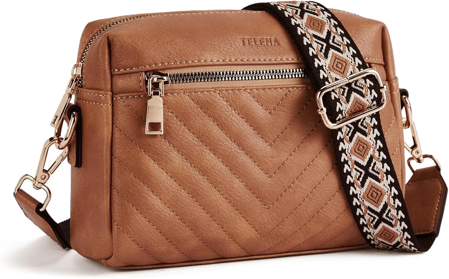 Telena ⁤Crossbody bags for Women trendy Quilted Crossbody Bag Leather Camera Bag Purse with Wide Shoulder Strap