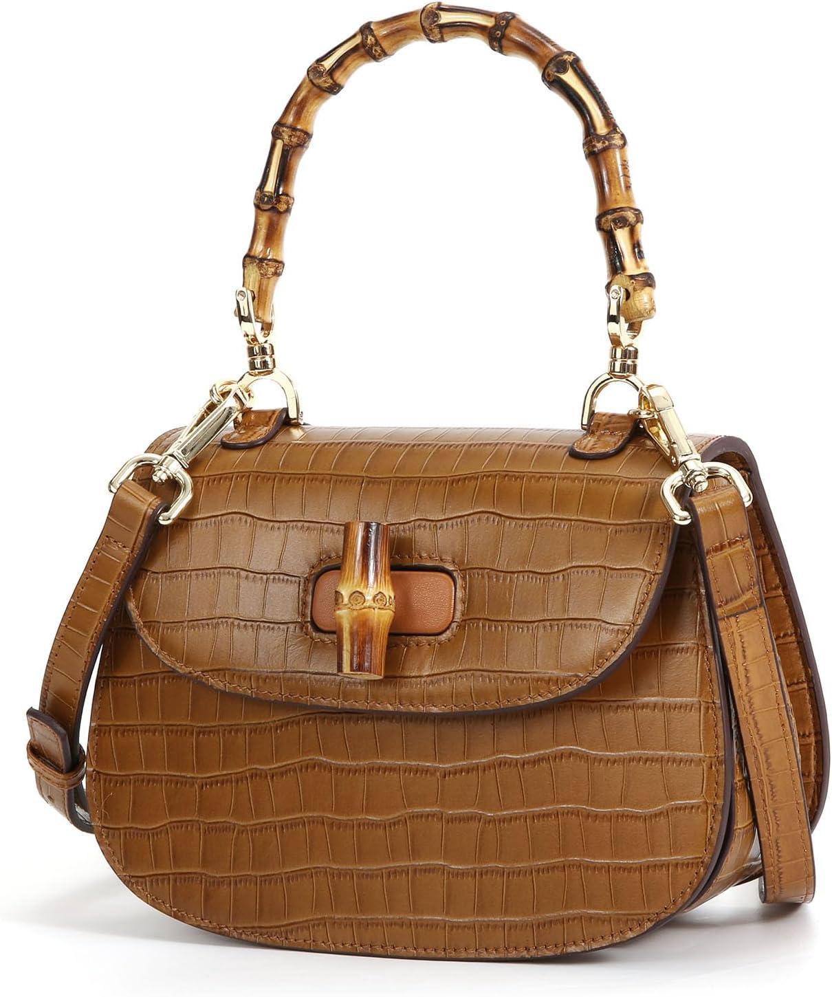 Genuine Leather‍ Crossbody ‌Purse Handbag for Women – Bamboo Top-Handle Bag Elegant Handmade Retro Shoulder Bag