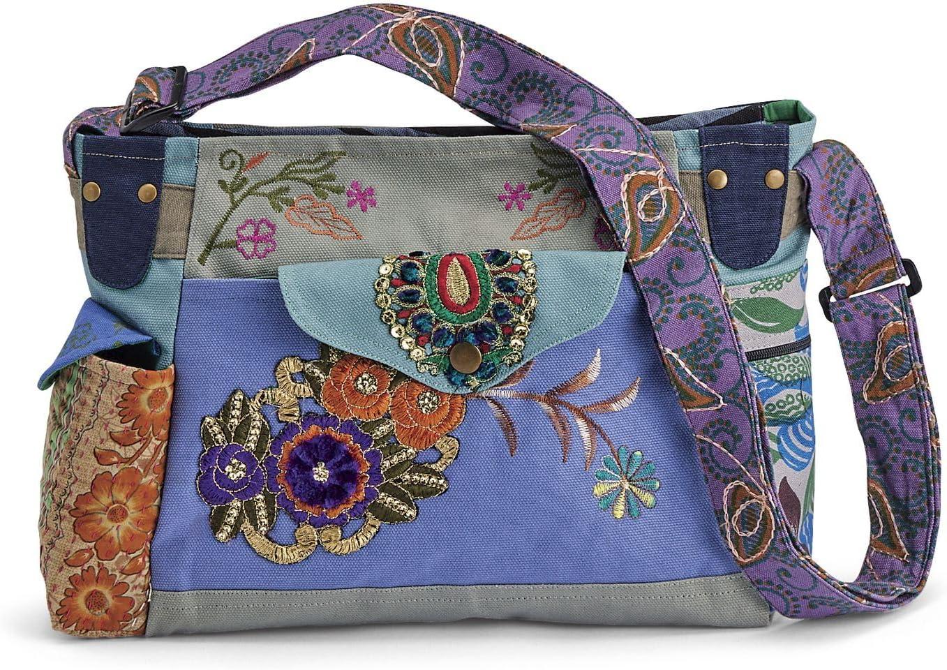 Patchwork Applique Purse, ⁤Women’s Boho Crossbody Bag,⁢ Adjustable Shoulder Strap, ​Top Zip Closure, 13” x 9”