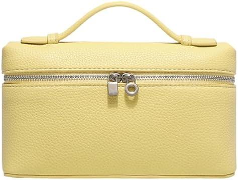 This stylish leather pouch is perfect for various occasions, including parties, commuting, and daily travel. Designed with a classic and versatile aesthetic, it meets multiple needs while seamlessly elevating any outfit. With dimensions of 7.9 x 2.8 x 5.1 inches and a lightweight feel of 8.8 ounces, carrying this chic bag is effortless. It features a unique woven design, adding an element of sophistication, and its light yellow color provides a radiant pop that is sure to catch the eye.