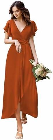 This stunning dress is designed for a variety of special occasions, including weddings, proms, and evening parties. Its unique features, such as a v-neck, chiffon fabric, and ruffle accents, make it stand out, while the high slit adds a touch of sophistication and allure. The built-in bra and side zipper provide convenience and comfort, ensuring a flattering silhouette for all body types, including plus sizes. Popular in various colors, this gown is versatile enough to be worn by bridesmaids, wedding guests, or even as a formal evening dress.