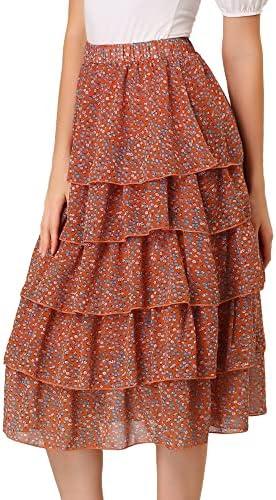 Allegra K Women’s Elastic Waist Midi Tiered Layered Chiffon Boho Bottoms Floral Skirt
