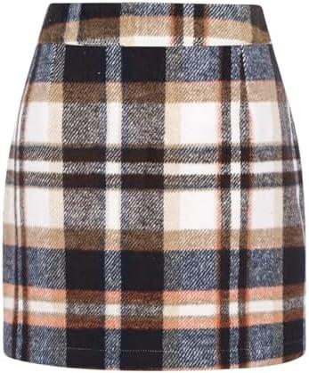 IDEALSANXUN Womens Wool Plaid Mini Skirt Fall Winter High Elastic Waist Short Pencil Skirt