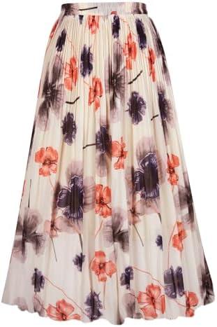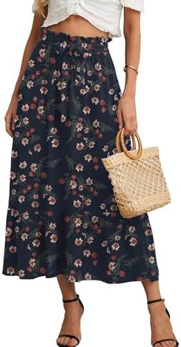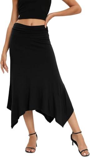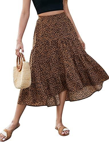 SimpleFun Women’s Long Skirts Boho Floral Elastic High Waist Asymmetrical Hem Midi Skirt