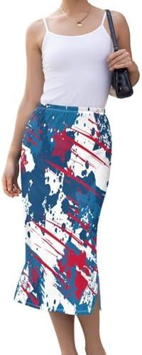 Exnundod Abstract USA Colors Women Midi Skirt USA Weekend Skirt Pull-On Knit Slip Skirts S-2XXL