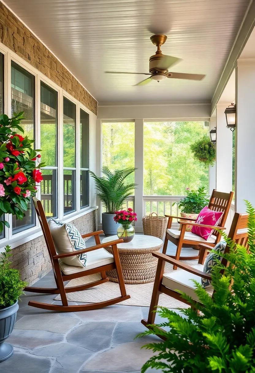 Creating a welcoming ambiance on your screened porch can transform it into an idyllic retreat that fosters warmth and connection.Rocking chairs serve as the centerpiece of this concept, perfect for lazy afternoons or evening chats that stretch into twilight. These chairs not only provide comfort but also invite interaction. The gentle sway encourages relaxation,making it a prime spot for sharing stories,sipping a favorite beverage,or simply enjoying the soft sounds of nature. When selecting rocking chairs, consider options that harmonize with your overall décor while promoting an inviting atmosphere.