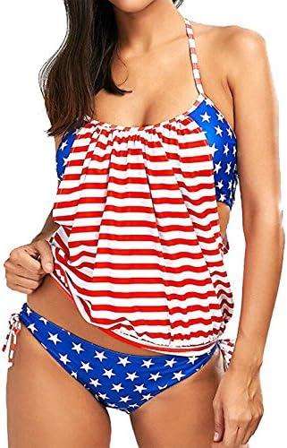 Women Two Piece High Waisted Bikini Set American Flag Swimsuits Bathing Suits