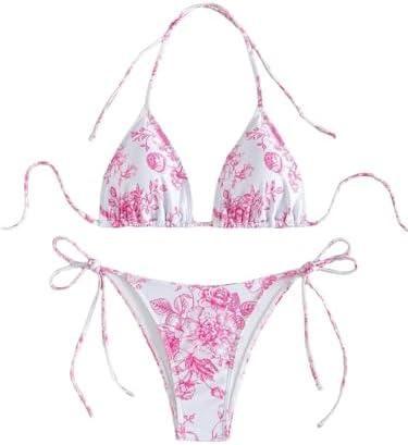 Women’s Floral Printed Halter Bathing Suit High Waisted Summer Boho Swimsuit Bikini Set