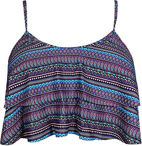 Women’s Retro Falbala Soild Floral Flounce Bikini Swim Top Chic Swimsuit(FBA)