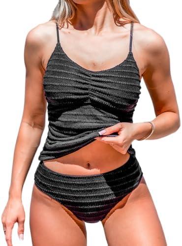 HYTENSUN Women’s V Cut High Waisted Bikini Ribbed V-Wired Cami Two Pieces Swimsuit