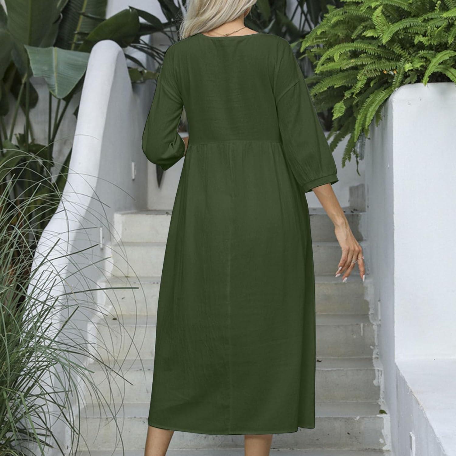 As we stepped into teh season’s transition, this Women Casual dress 2024 Fall Basic cotton Linen Solid Dress quickly became a staple in our wardrobe rotation. Crafted from a breathable cotton-linen blend, it offers a comforting fit ideal for those crisp autumn days.The high waist and pleated A-line design create a flattering silhouette, while the half sleeves add just the right touch of coverage without feeling bulky. Having worn it through various activities, we’ve found it strikes a nice balance between casual ease and subtle style – perfect for everyday fall wear. In this review, we’ll share our honest impressions of this dress, exploring its fabric quality, fit, and overall wearability.