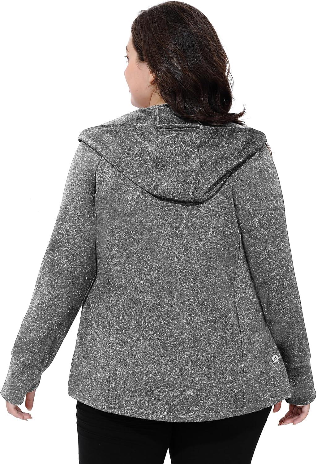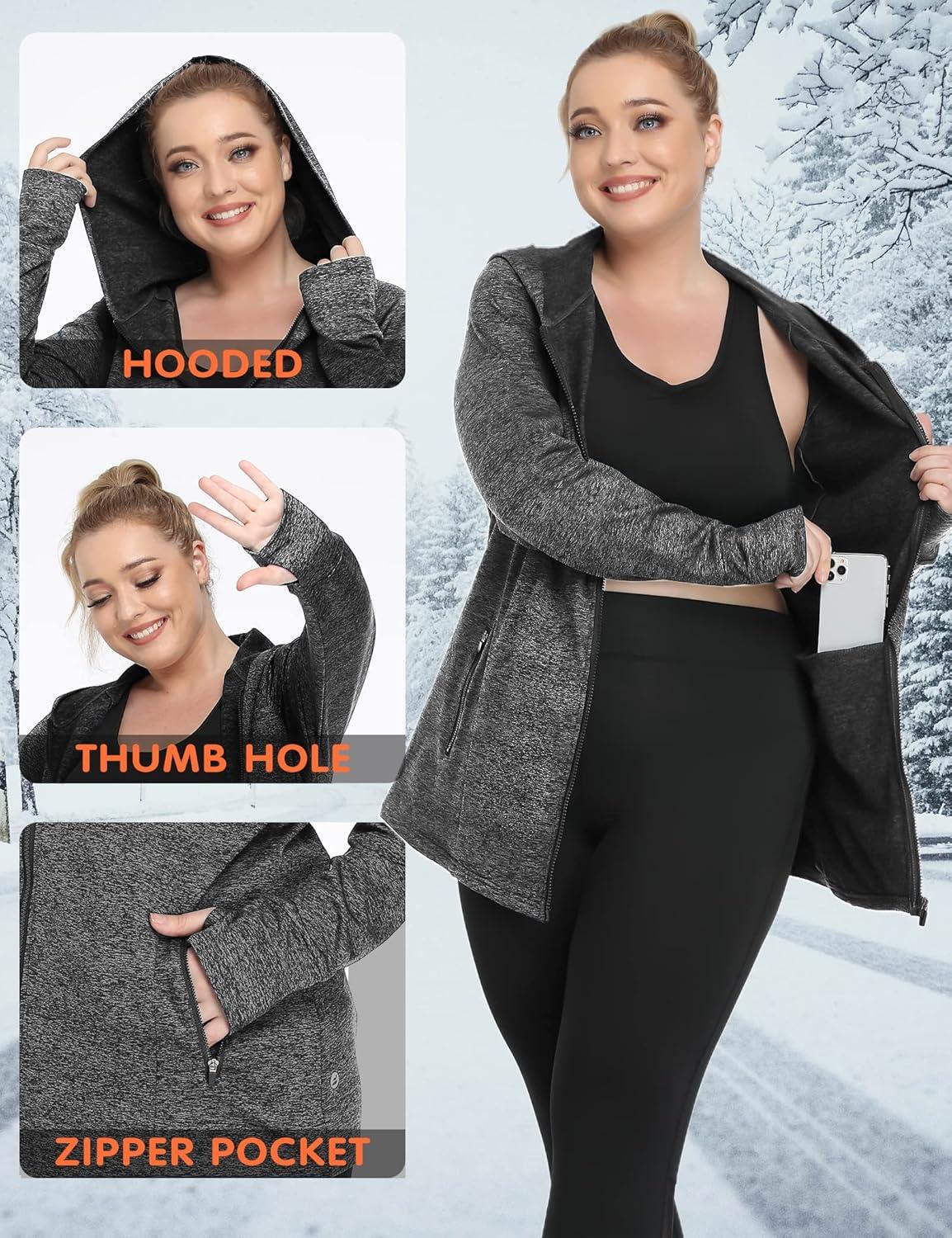 When layering for winter, this fleece jacket serves as an ideal base or mid-layer thanks to its lightweight warmth and soft fleece lining. It pairs effortlessly with casual jeans for weekend outings or layered under a heavier coat during colder spells.The zip-up design with a hood and thumbhole sleeves adds functional style, allowing us to maintain a sleek silhouette while staying cozy. Plus-size options ensure a flattering fit without bulk, making it perfect for both athleisure and everyday wear.