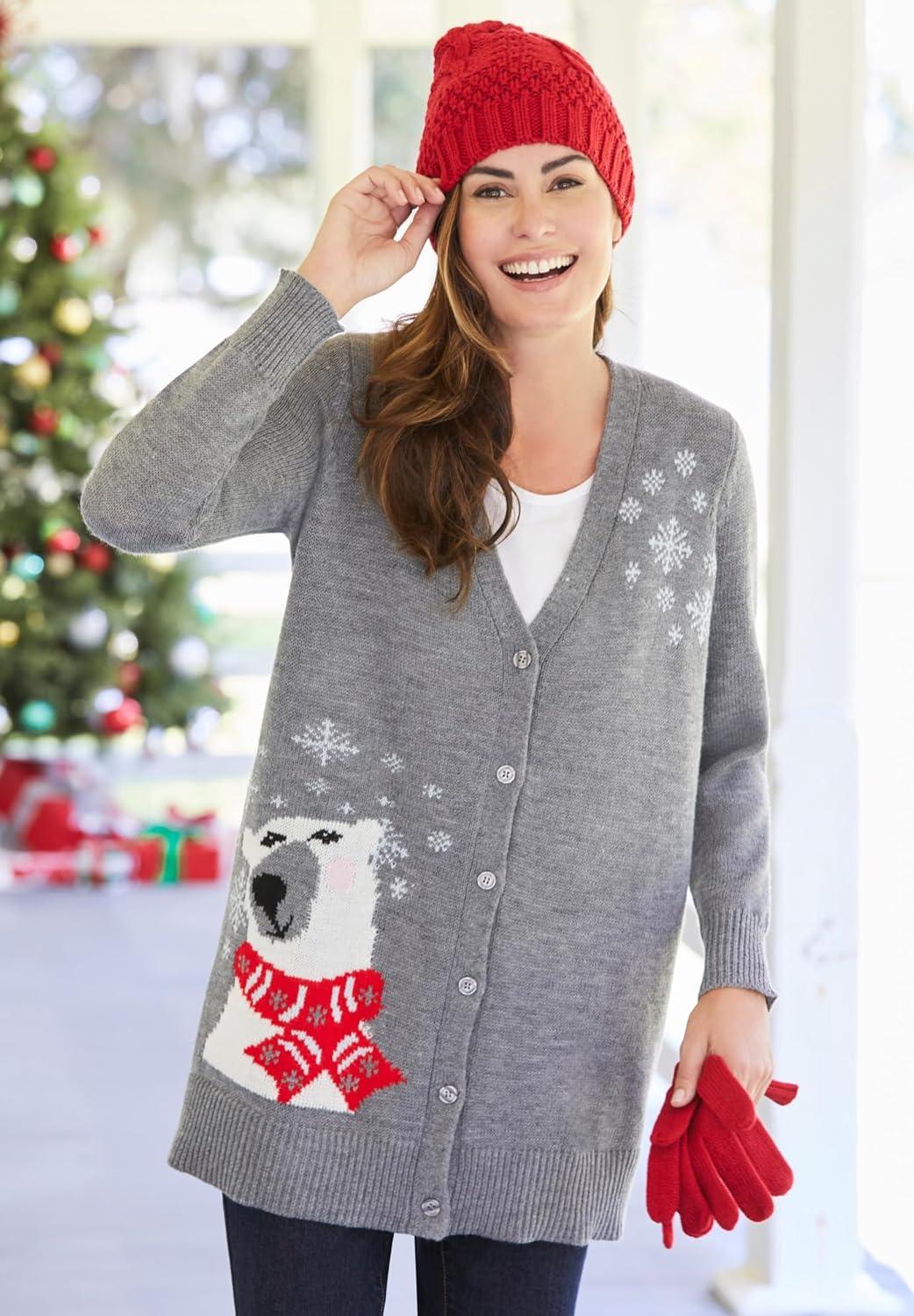 Ready to add a little festive comfort to your closet? Check it out for yourself here: Shop the Woman Within Women’s Plus size Holiday Cardigan on Amazon.