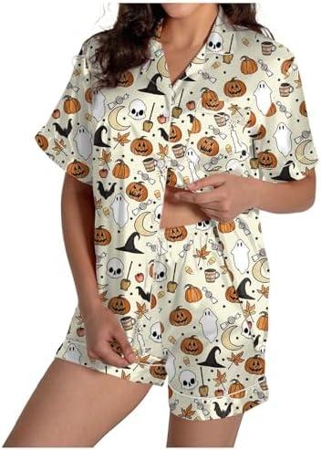 As the Halloween season creeps closer, we find ourselves on the hunt for festive yet comfortable attire to celebrate in style, and this Women’s Halloween Silk Satin Pajamas Set caught our eye with its playful design and luxurious feel. The set features short sleeves adorned with whimsical ghost and pumpkin motifs, perfectly pairing comfort with the spirit of the season. With an elastic waistband on the shorts, it promises both ease and flexibility, making it ideal for cozy evenings filled with spooky movies or seasonal gatherings. We couldn’t wait to slip into this delightful ensemble and experience how it melds holiday cheer with the indulgence of satin.