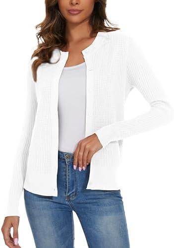 This versatile cardigan is a fantastic addition to any wardrobe, offering a blend of style and comfort. The waffle knit texture adds a unique appeal, making it perfect for layering during cooler months. Crafted with a classic crew neck and button-down front, it provides ample opportunity for personal style—whether you want to keep it casual or dress it up. With long sleeves, it ensures warmth without sacrificing breathability, making it a wardrobe staple that’s easy to wear all day long.