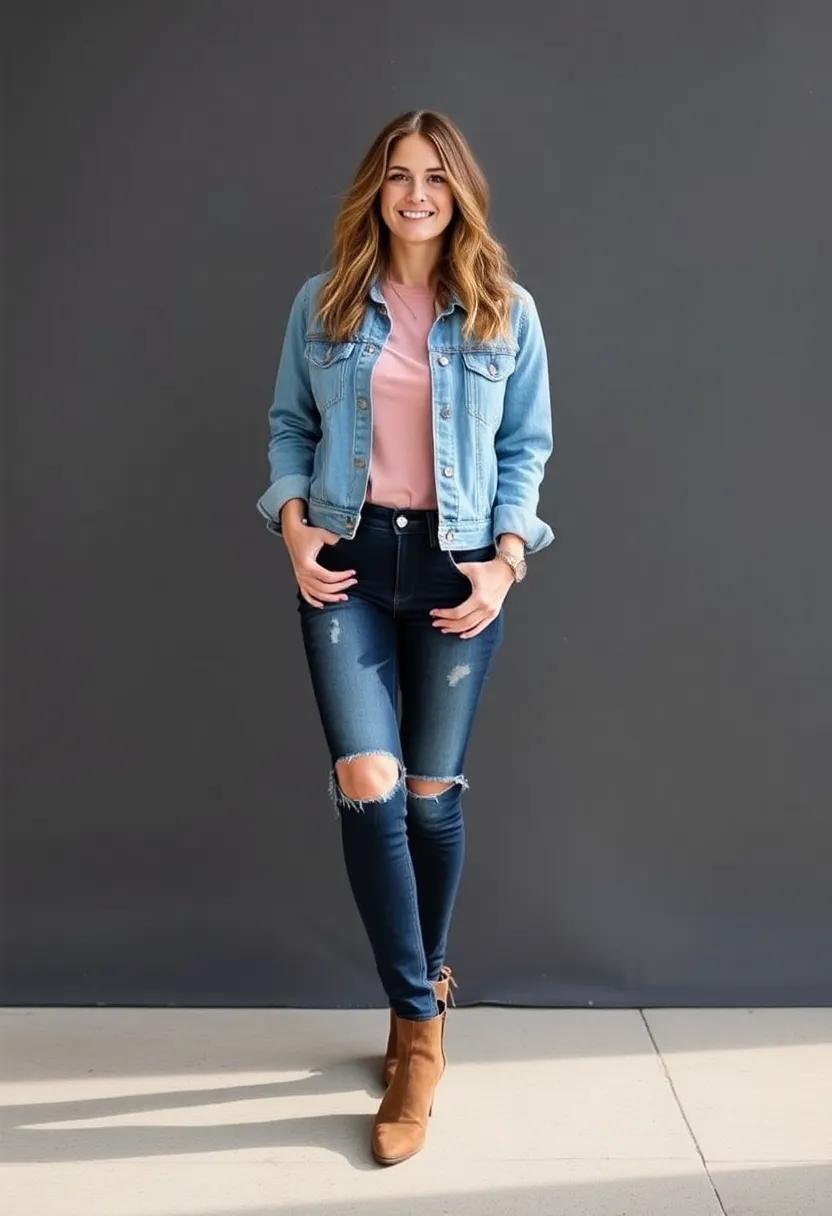 - Distressed Denim: Channel your inner Gigi Hadid with ripped jeans paired with ankle boots for an edgy vibe.
