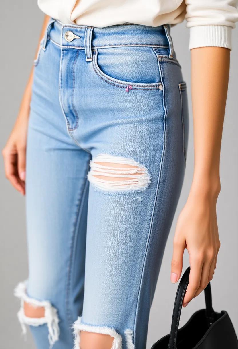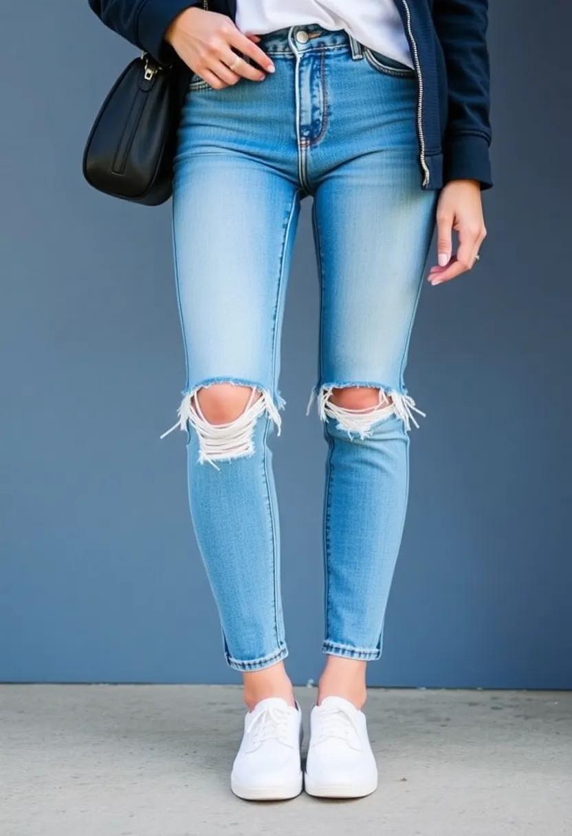 - Distressed Denim: Channel your inner Gigi Hadid with ripped jeans paired with ankle boots for an edgy vibe.