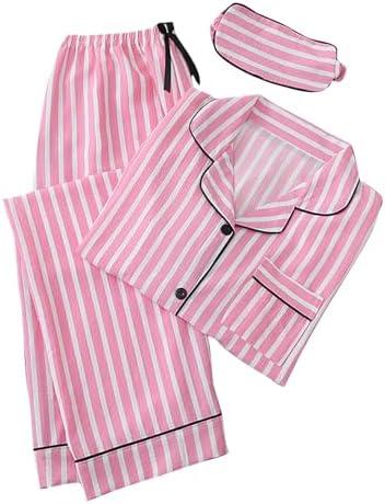 This three-piece sleepwear set features a button-down long sleeve shirt and long pants, all designed with a classic striped pattern that combines style with comfort. Made from soft fabrics, it ensures a cozy experience and is perfect for lounging or a good night’s sleep. The breathable material helps regulate temperature, keeping you comfortable throughout the night. Plus, the set comes in various sizes for a better fit, although it’s recommended to order one to two sizes larger due to Asian sizing standards.