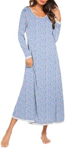 Ekouaer Nightgown Women Long Sleeve Sleepwear Full Length Long Nightshirt Soft Loungewear S-4XL