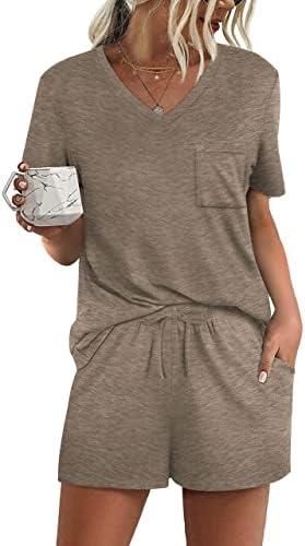RUBZOOF Women’s Short Sleeve Pajama Sets with Pockets Casual V Neck 2 Piece Lounge Sets S-3XL
