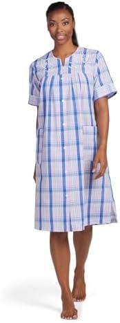 Stylish Short Seersucker Robe with Snap Front and Short Sleeves