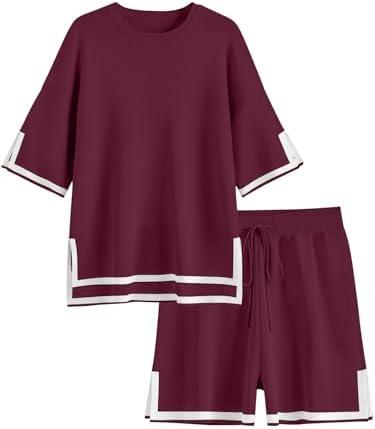 Ekouaer Womens Knit Lounge Set 2 Piece Sweater Sets Short Sleeve Sweatsuit Pullover Tops