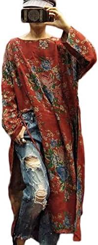 This charming floral print dress combines vintage aesthetics with modern comfort. Crafted from soft cotton, it features a long sleeve design and a delicate pattern that is not overly bright, making it suitable for a variety of occasions. The side high split adds a touch of femininity, elegantly showcasing legs while maintaining a modest overall look. The loose robe-style fit, complemented by a waist drawstring, caters to different body shapes and sizes, making it versatile for casual outings, vacations, or daily wear.