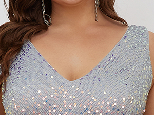 When it comes to embracing our curves and enhancing our overall look, this stunning dress stands out with its unique design and flattering silhouette. The double V-neck adds an elegant touch, drawing attention to our neckline while elongating the figure, making it perfect for both formal occasions and elegant gatherings. We can experiment with accessories by opting for a statement necklace or bold earrings that complement the shimmer of the sequins, adding a touch of glamour to our outfit. A pair of strappy heels can also elevate our look, creating an elongated leg line that pairs beautifully with the high-low hemline.