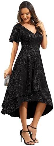 Ever-Pretty Women’s A Line V Neck Ruffle Sleeves Pleated High Low Formal Dresses 02084