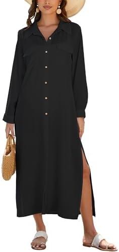 When it comes to comfort and functionality, this long sleeve button shirt dress truly excels. Made from lightweight and breathable polyester, it envelops us in softness that feels wonderful against the skin, especially on warm days at the beach. The fabric not only ensures we stay cool but also has impressive quick-drying properties, allowing us to transition seamlessly from the water to our favorite beachside café. With a V-neck lapel and stylish side slits, it enhances our silhouette while remaining practical, whether we’re strolling along the shore or lounging by the pool.