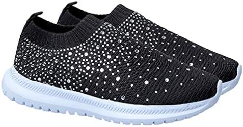 Holibanna Rhinestone Slip On Sneakers Breathable Sock Shoes Mesh Walking Running Sports Shoes Black