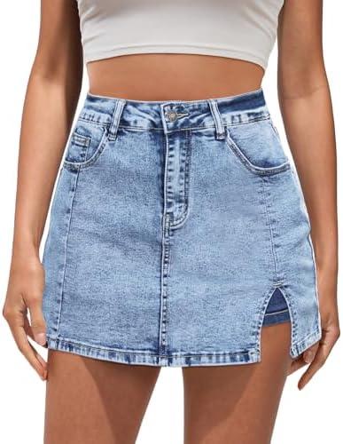 Trendy High Waisted Stretchy Denim Skirt with Shorts for Casual Summer Wear