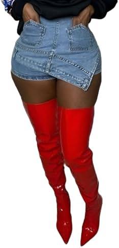 Women’s Denim Skorts Y2k Cargo High-Waisted Asymmetrical Stretchy Wrap Skirt Front Trendy Shorts