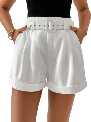 SweatyRocks Women’s Casual High Waist Wide Leg Shorts Plicated Roll Hem Belted Shorts