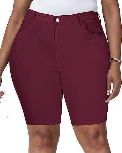 Gboomo Womens Plus Size Bermuda Shorts High Waist Shorts Skinny Stretchy Comfy Chino Shorts