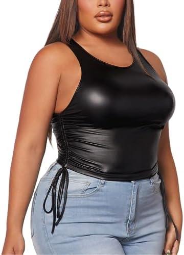 Floerns Women’s Plus Size Drawstring Ruched Sleeveless Metallic Crop Tank Top