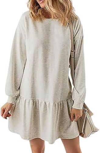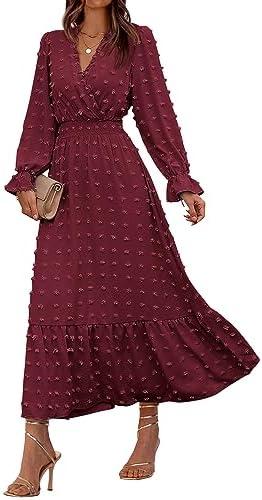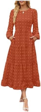 Women’s Fall Long Sleeve Maxi-Dresses Casual Crew Neck Dot Tiered Flowy A Line Dress